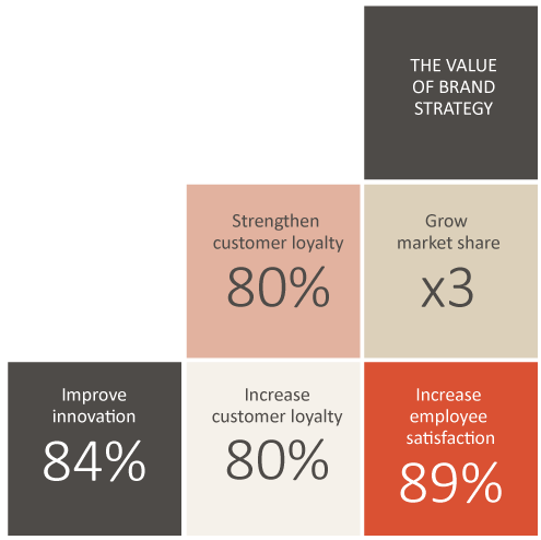 According to Interbrand and JP Morgan, on average, brand accounts for more than a third of shareholder value. The impact and importance of brand strategy touches all areas of an organisation. Based on research conducted by Harvard Business Review and pwc, a strong brand strategy can make a big impact on all areas of an organisation.